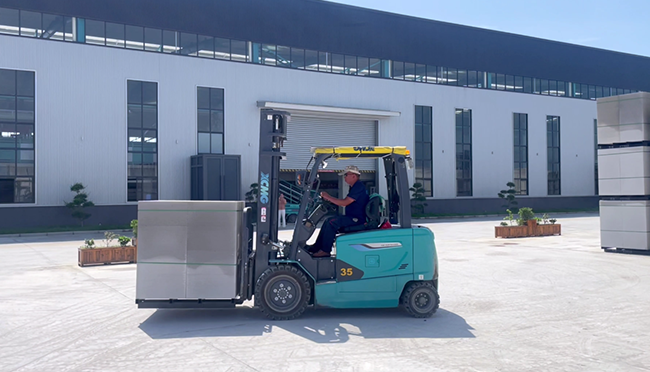 领跑行业,该企业生产节奏快、交货忙,鲲鹏电动叉车在产品的装卸、转运、堆垛等环节都扮演着重要角色。