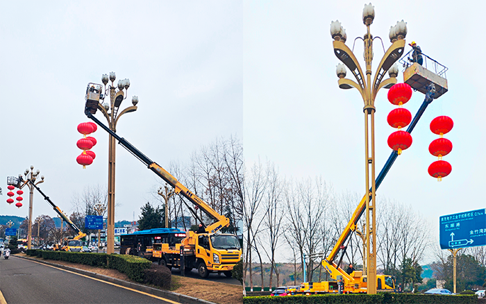 稳定性能决定灯笼悬挂的精准美观。徐工高空车凭借精湛稳定性,大幅削减高空晃动,实现平稳升降,操作人员可精准调整灯笼角度,避免磕碰,让红灯笼成为城市靓丽的新春点缀。高效作业更助力抢抓工期,其车身紧凑、转场便捷,搭配便捷操作模式,大幅缩短施工时间、节省人力,确保灯笼按时悬挂到位。