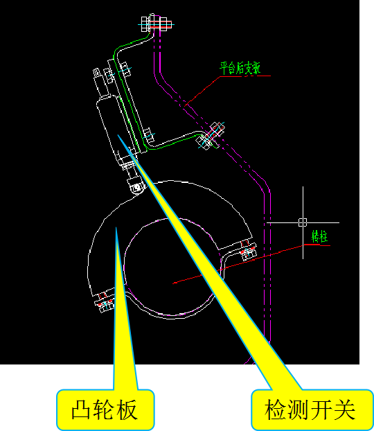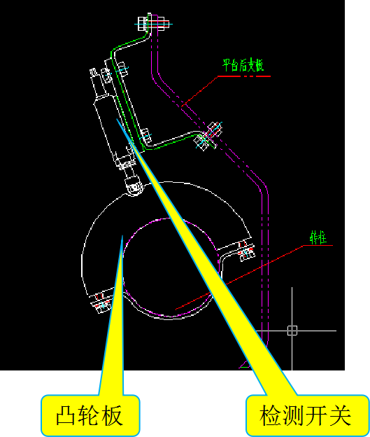 (3)安装位置:安装在平台转柱上端,开关围绕凸轮板旋转。