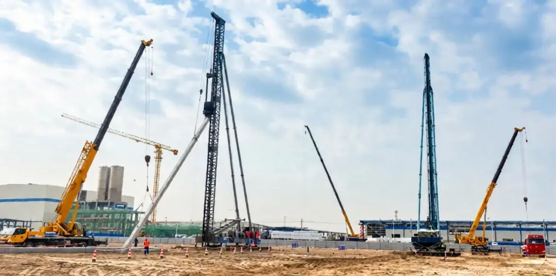 塔里木某石化项目现场,徐工起重机从开辟战场阶段便全程参与。项目初期,其设备高效完成了桩基处理等基础吊装任务,为后续超大型吊车进场扫清了障碍。