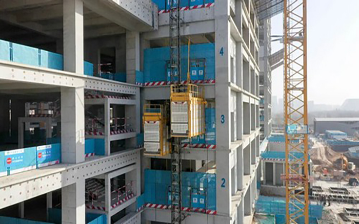 4台XGT600-32S1担纲主力,承载着项目钢结构、预制构件等重型吊装任务,数十米高的钢柱、成吨的钢筋捆扎,被稳稳送至指定点位,起升平稳、就位精准;2台ZSC200/200FS1载着工人与物料往返有序。两机配合默契,为项目建设按下“快进键”。